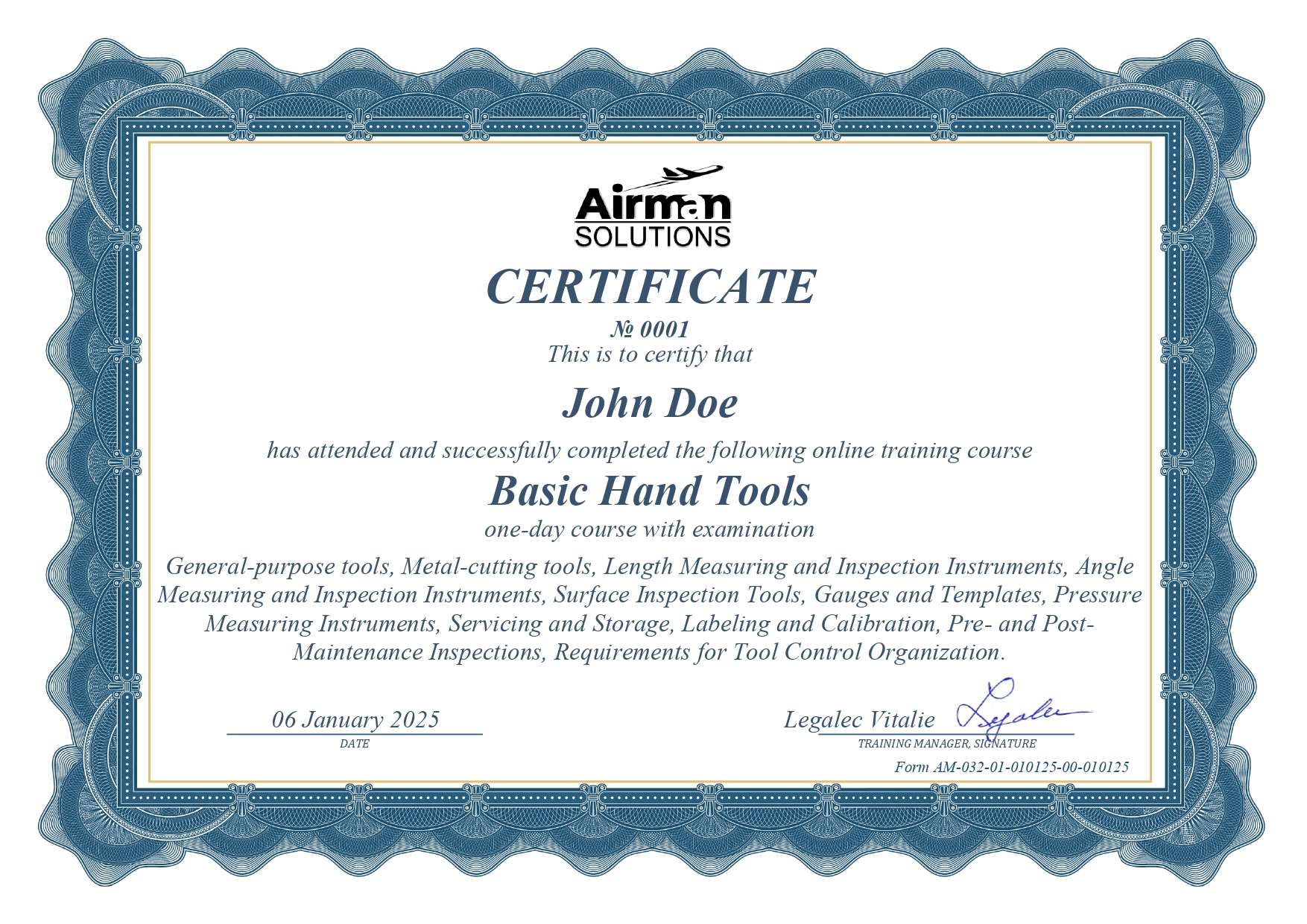 В этом курсе излагаются основные знания, необходимые для использования наиболее распространенных ручных инструментов и измерительных приборов, используемых при обслуживании авиационной техники.